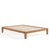 A wooden bed base designed to support mattresses with a low profile and stable platform structure.